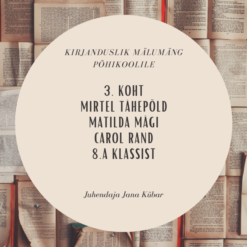 3. koht kirjanduslikult mälumängult põhikoolidele